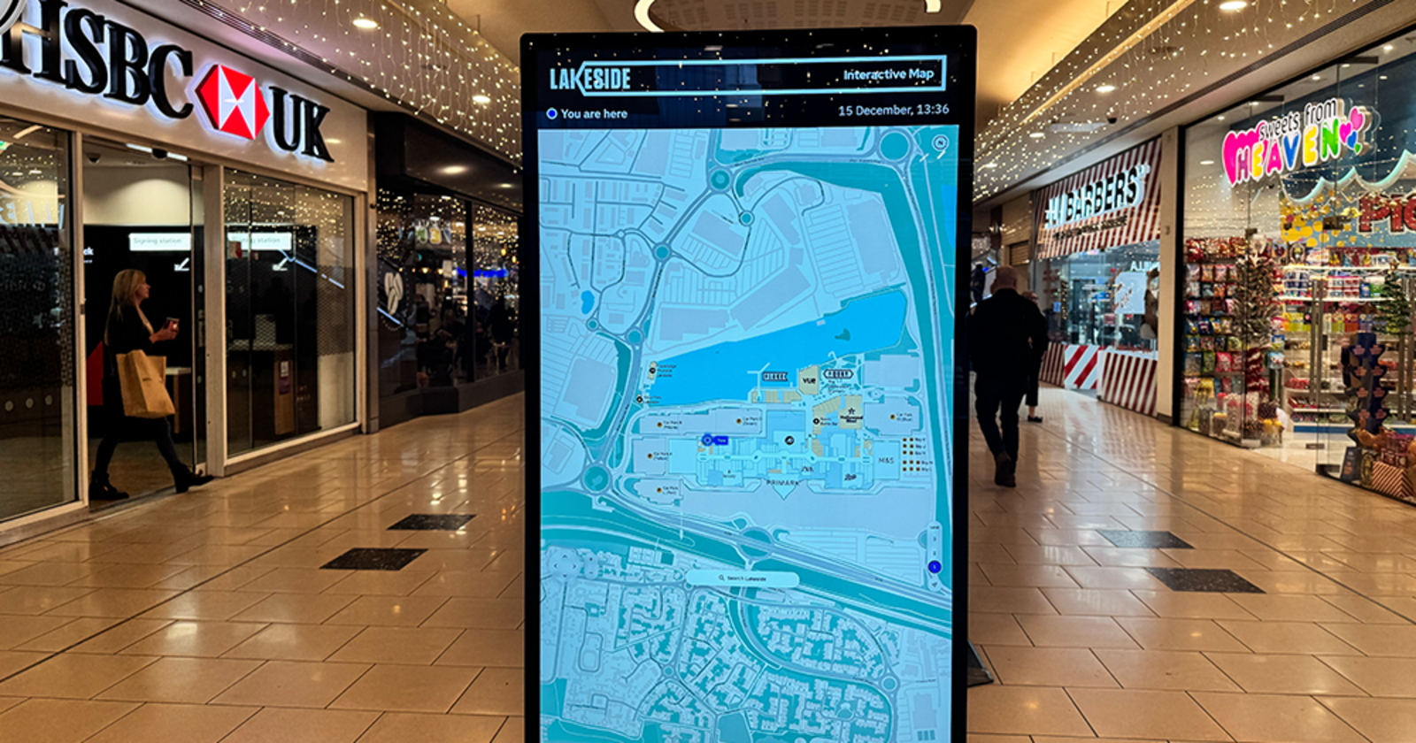 Lakeside’s selected Living Map, an intuitive digital wayfinding and indoor mapping platform that provides a fully interactive map across kiosks and mobile. Shoppers can instantly load the map to their phone by scanning a QR code from the kiosk, giving them access to clear, accessible, stair free routes throughout their journey.
